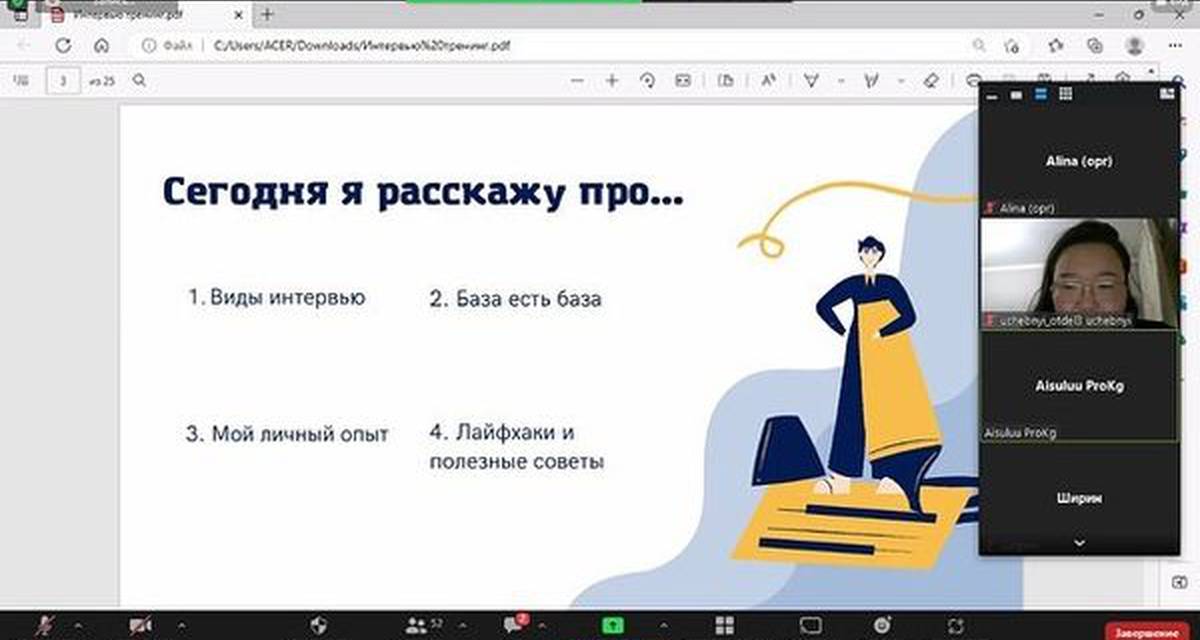 The first training was held on the topic of "Interview" with Aisuluu Zholdoshova, Executive Director of Prokg