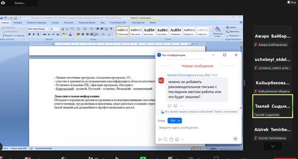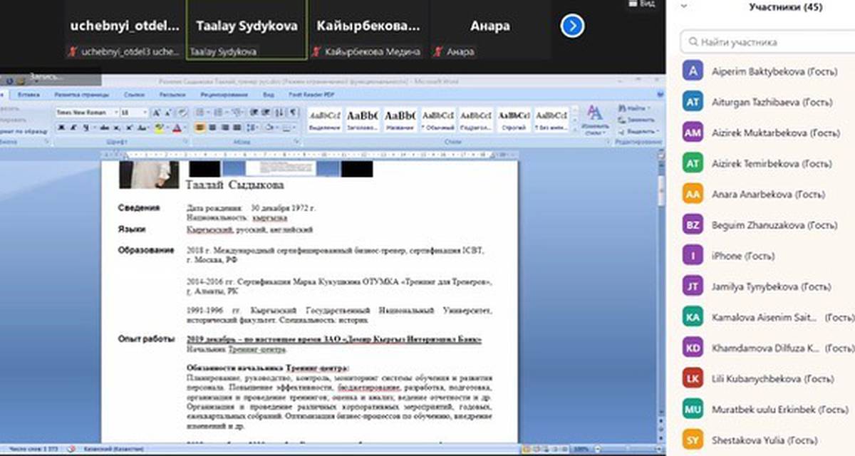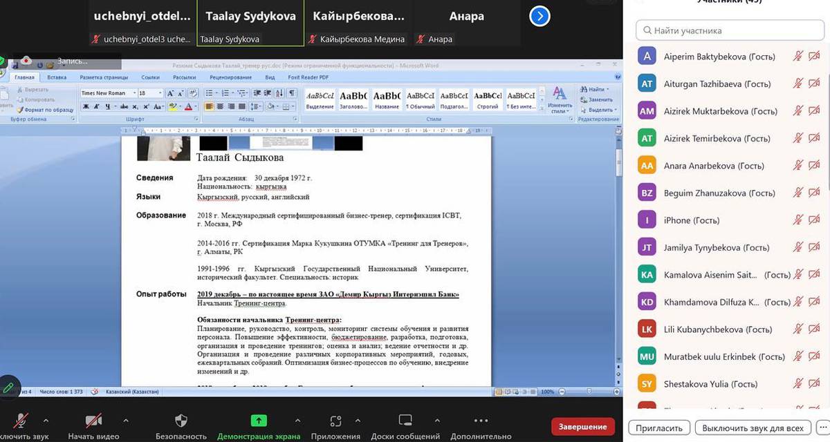 The second training was on the topic "CV resume" with the Head of the HR Department of the Bank of Asia Taalai Sydykova
