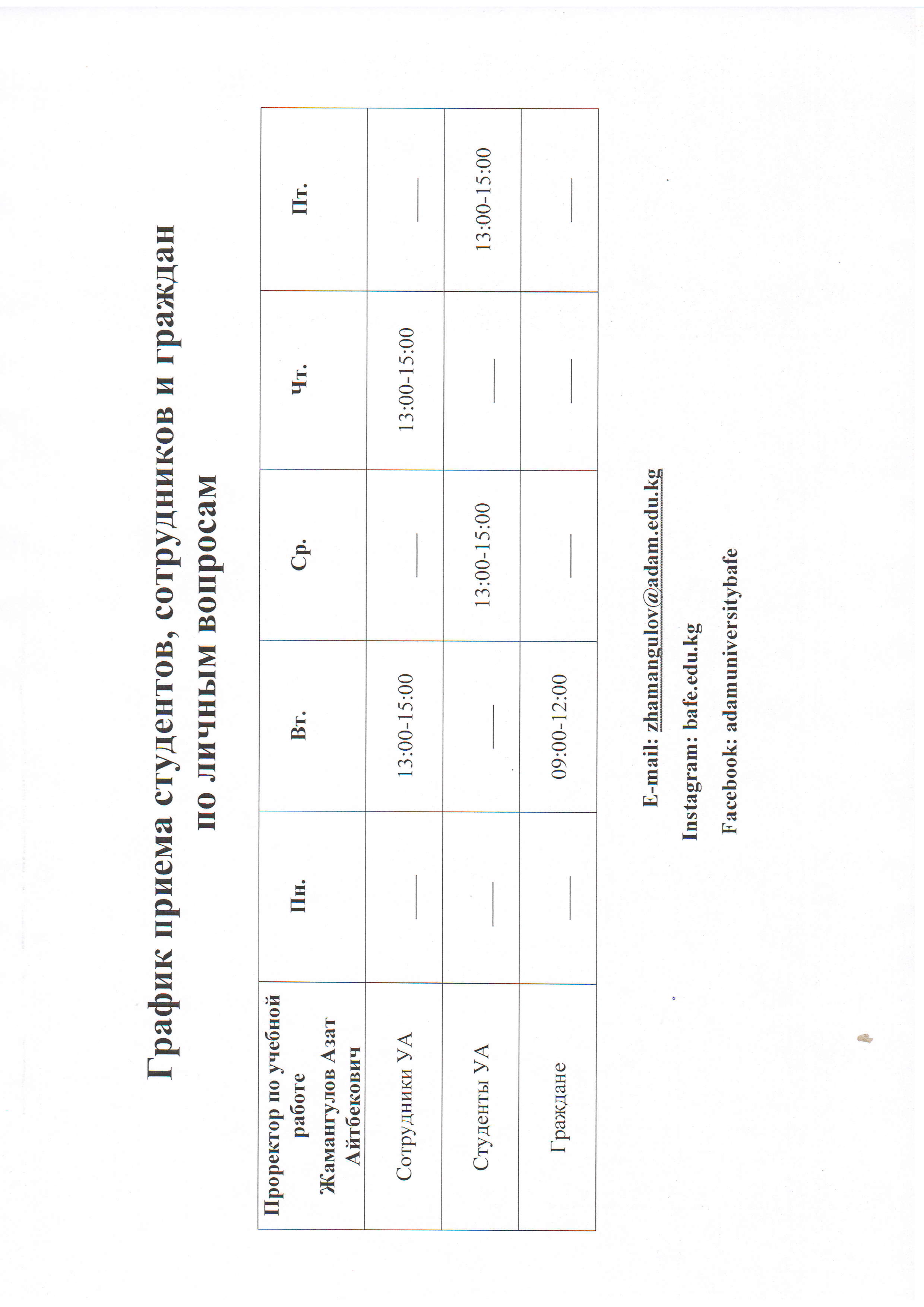 График приема студентов, сотрудников и граждан по личным вопросам