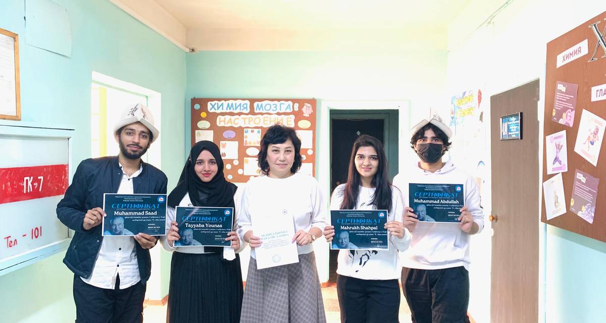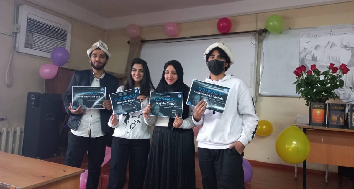 Студенты групп GM-1-21 и GM-2-21 Mahrukh Shahpal, Tayyaba Younus, Muhammad Saad, Muhammad Abdullah прочитали отрывки из произведений Ч.Айтматова на кыргызском языке. За активное участие студентам вручены сертификаты.