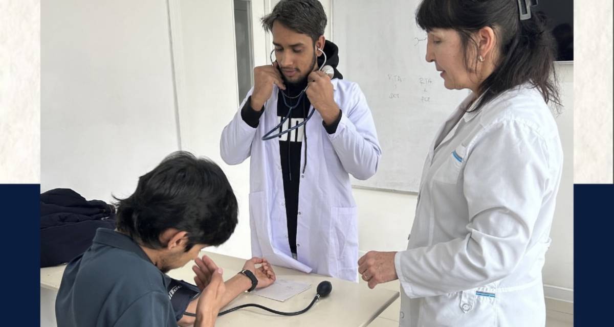 Под руководством преподавателя Рано Шарифовны студенты осваивают навыки работы медицинской сестры и учатся правильно измерять артериальное давление.