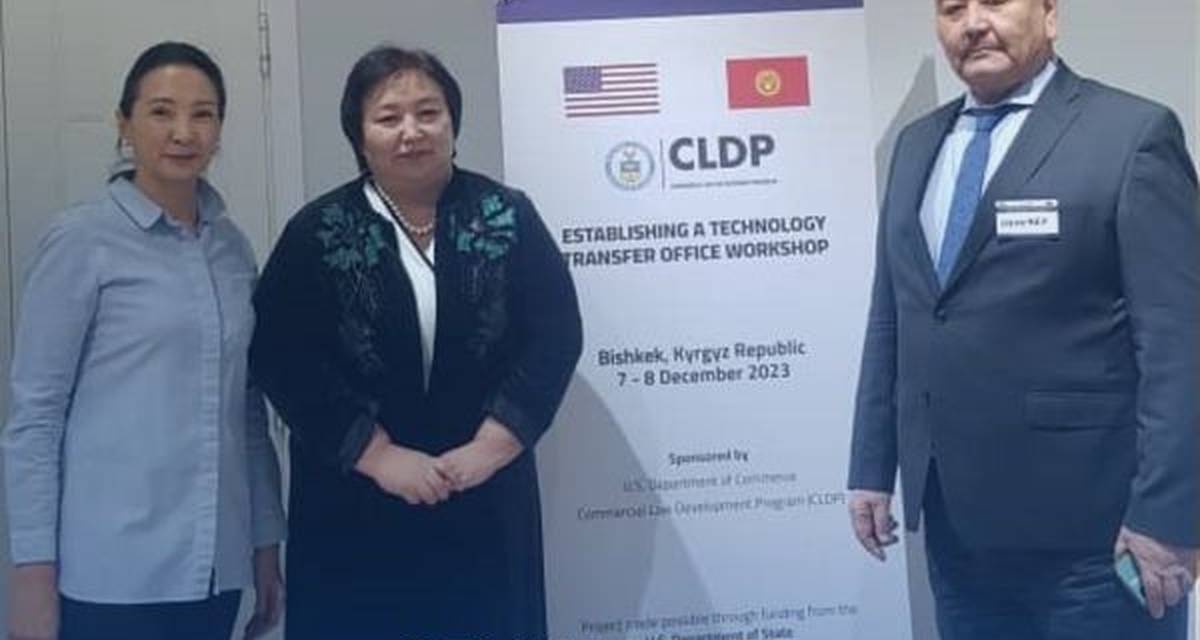 Проректор по научной работе Университета Адам к.э.н. доцент Г.Дж. Батырканова, принимает участие в семинаре по «Созданию управления трансфера технологий» Программы развития коммерческого права (CLDP) Министерства торговли США организованной Кыргызпатентом.